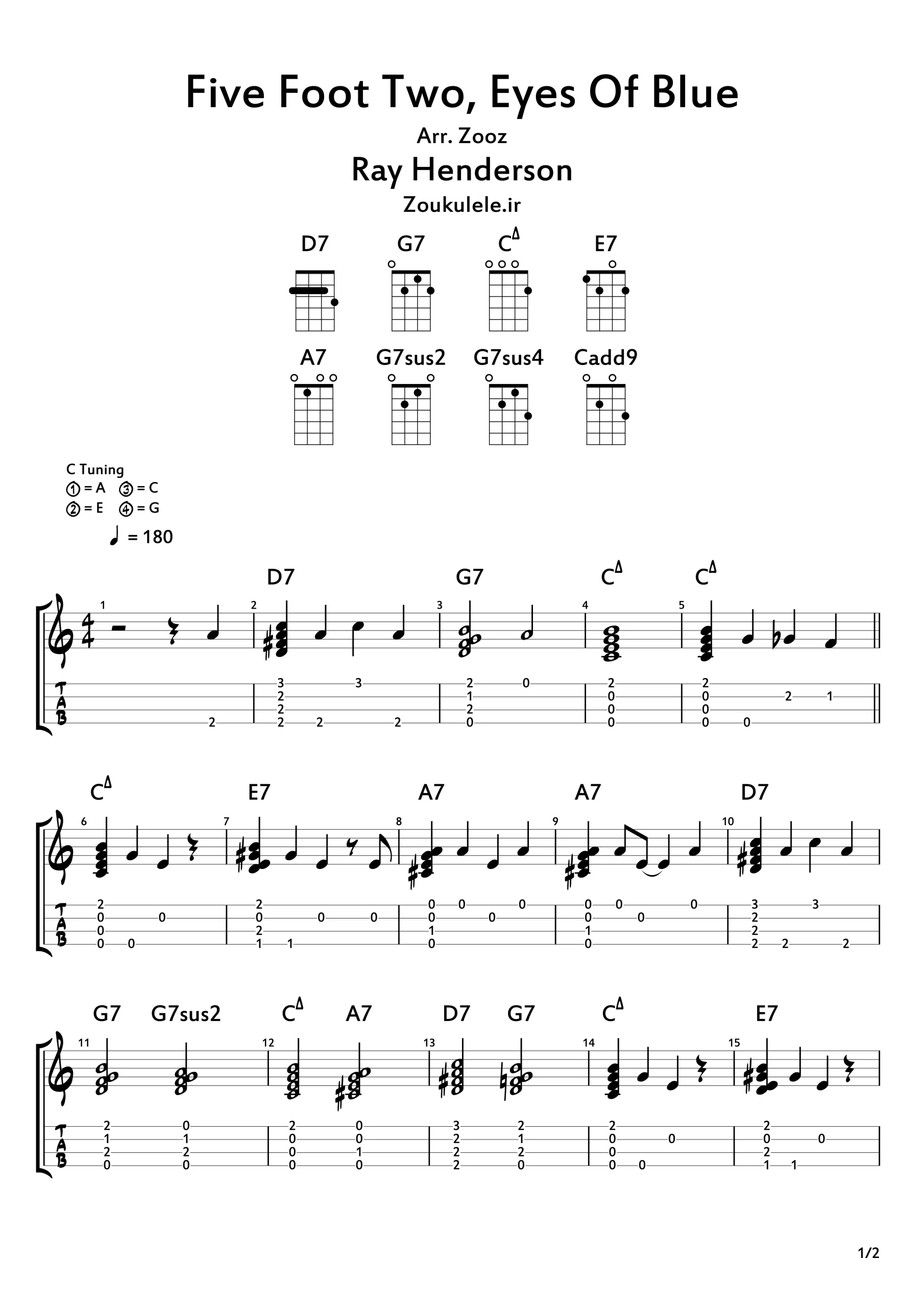 نُت و تبلچر موزیکِ Five Foot Two, Eyes Of Blue by Ray Henderson